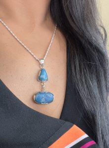 In our view, any power symbol with intention work really well i.e. Our Evanshi Necklace which is in triangle or yoni form; the main triangle in Sri Yantra. This is of course our interpretation. Without it, it is just a beautiful piece of jewellery with lovely, bright turquoise stones.