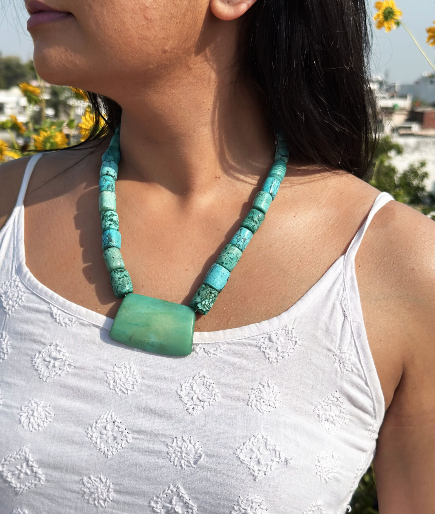 Say hello to summer with our restored vintage Enakshi Designer Tibetan Turquoise Necklace. Epitome of chic and elegant style.