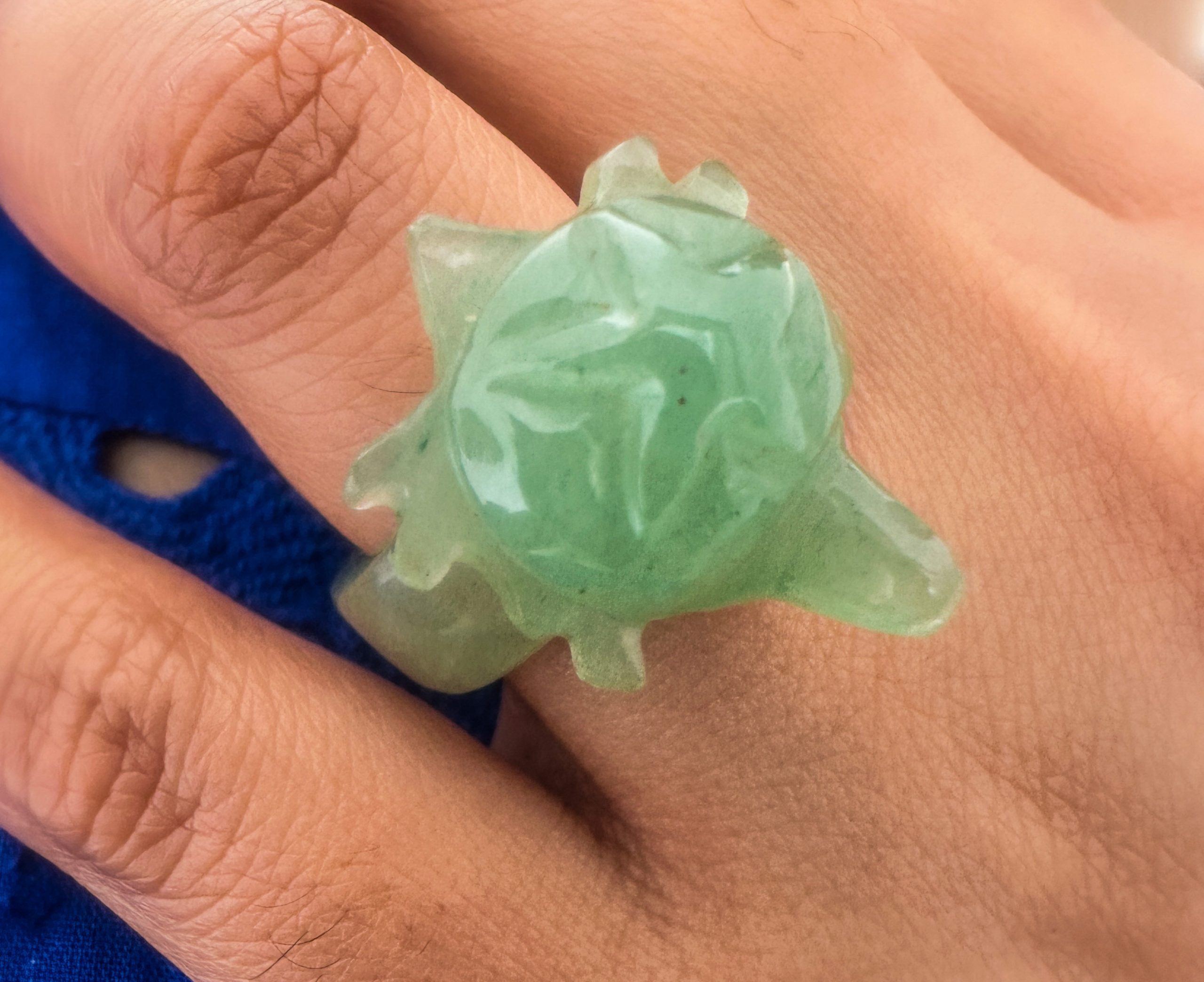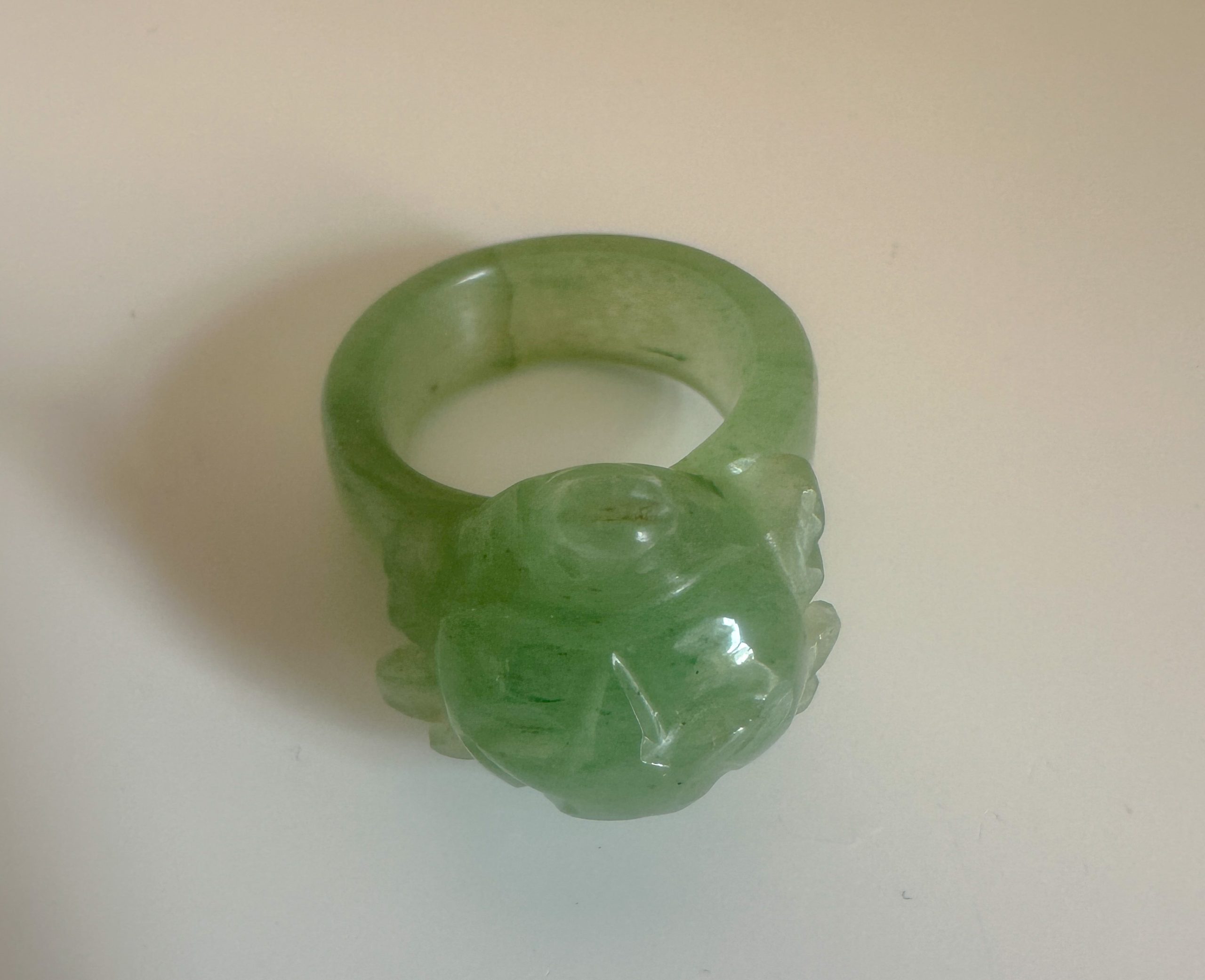 Carved Tortoise jade ring. Vintage ring, unique one if a kind piece. Size N1/2
