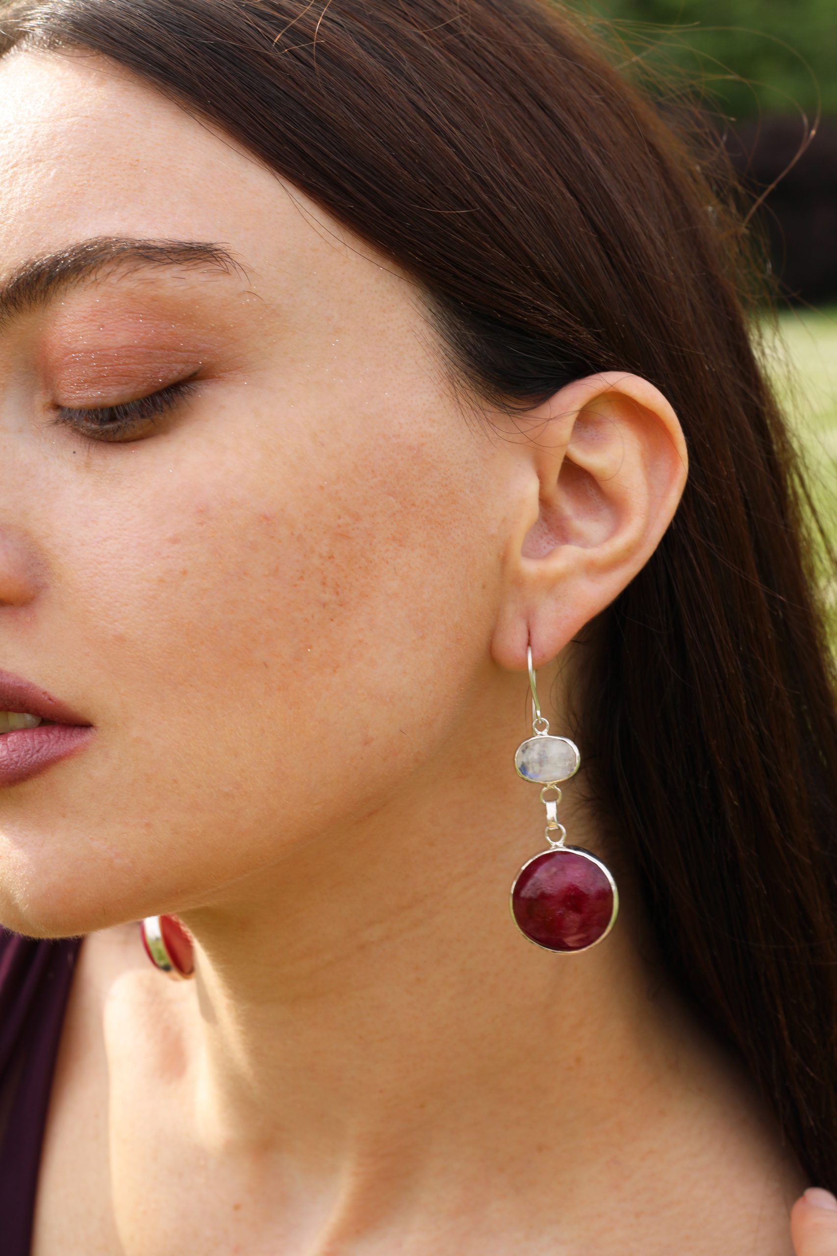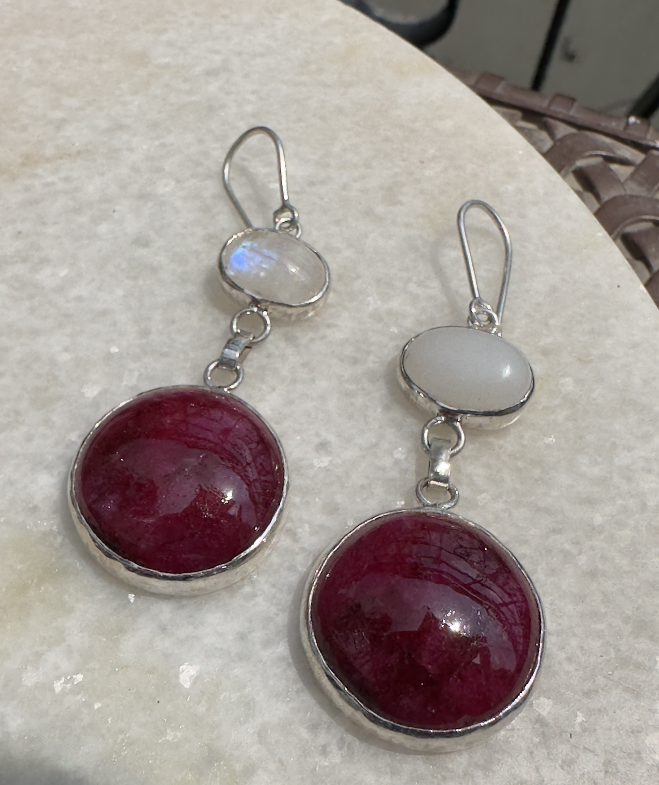 - Stones – Rainbow Moonstone, Moonstone, Chalcedony (PS -one earring has moonstone and other one has rainbow moonstone)