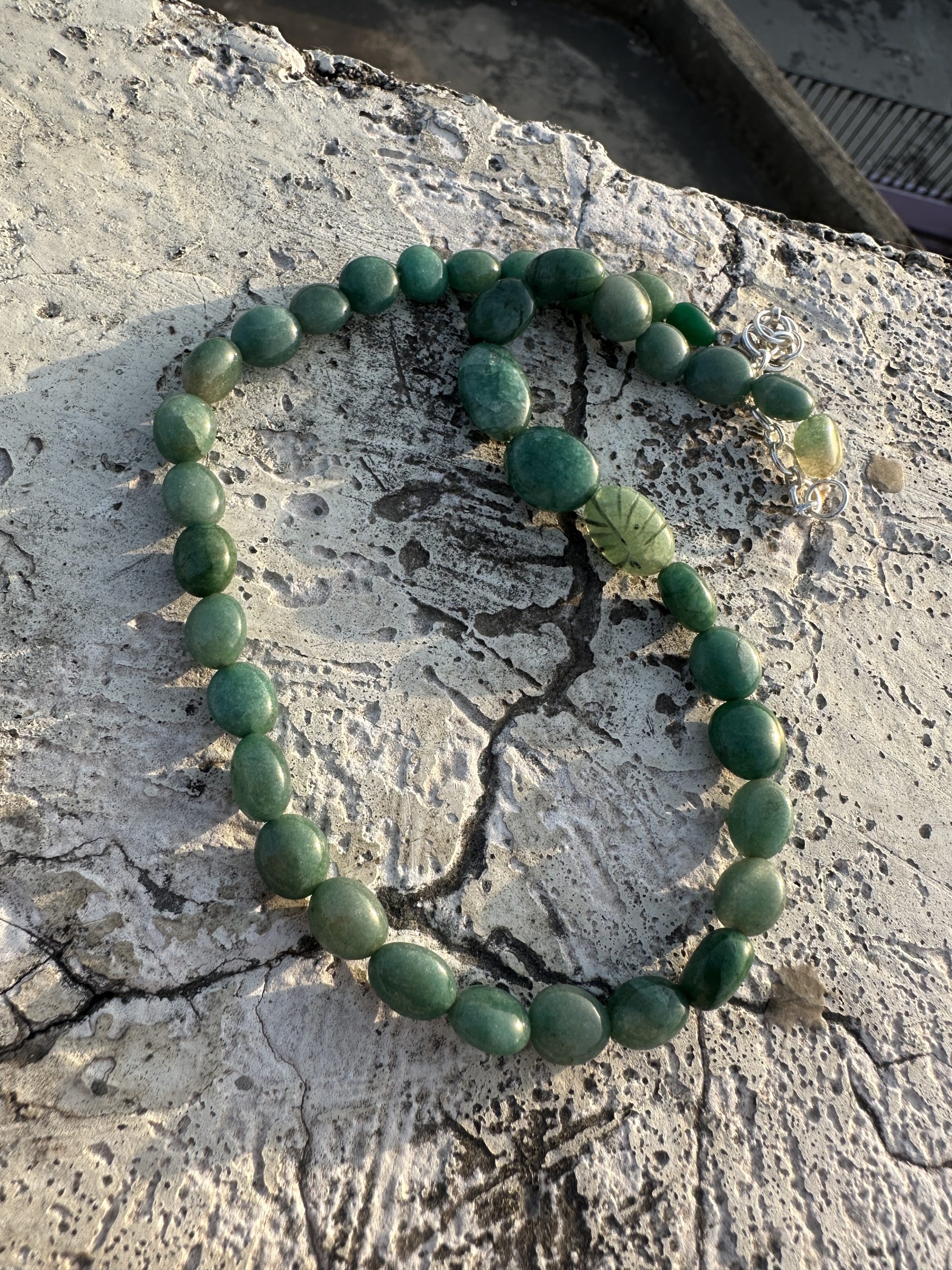 - Pale green stone necklace