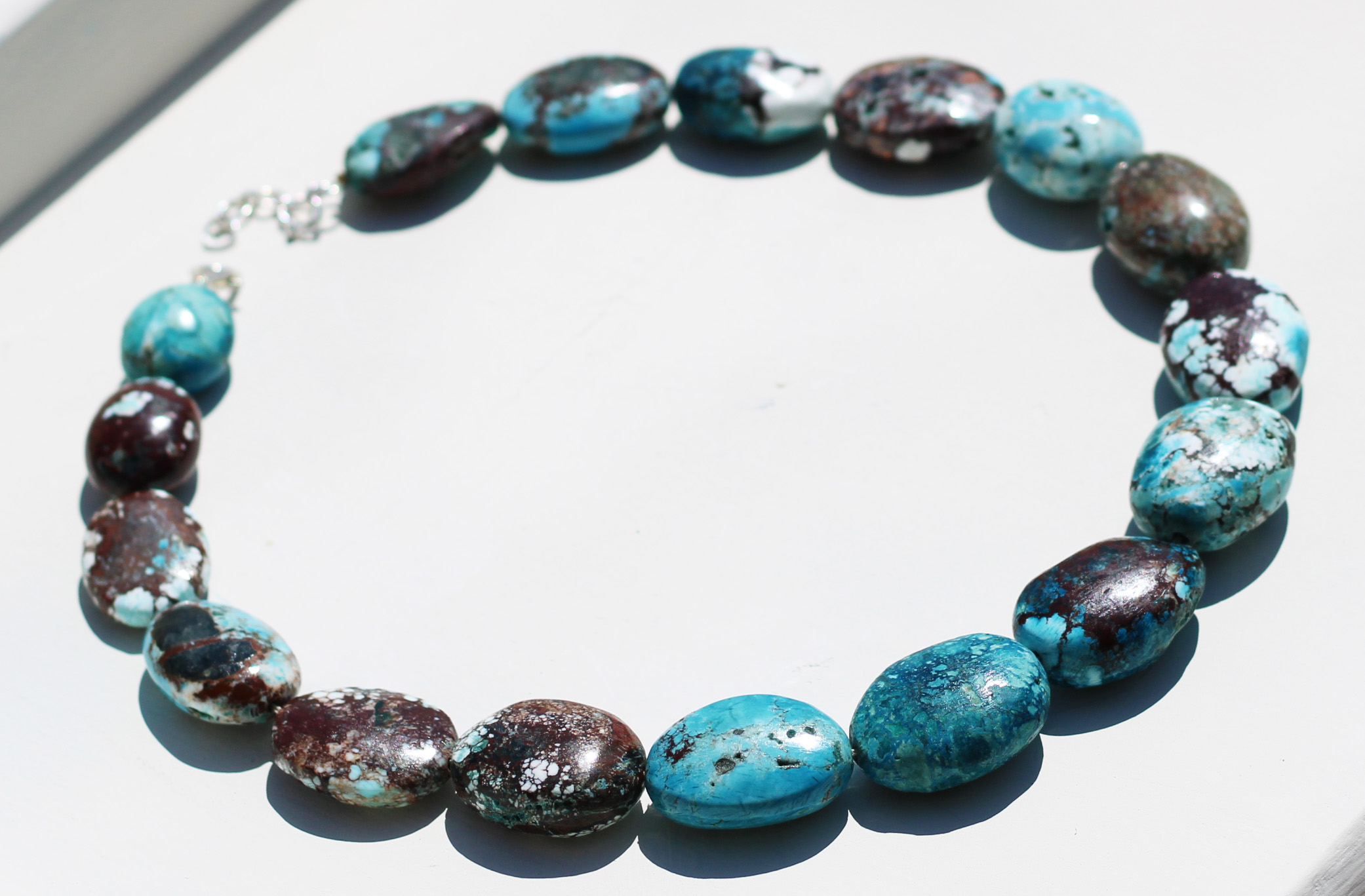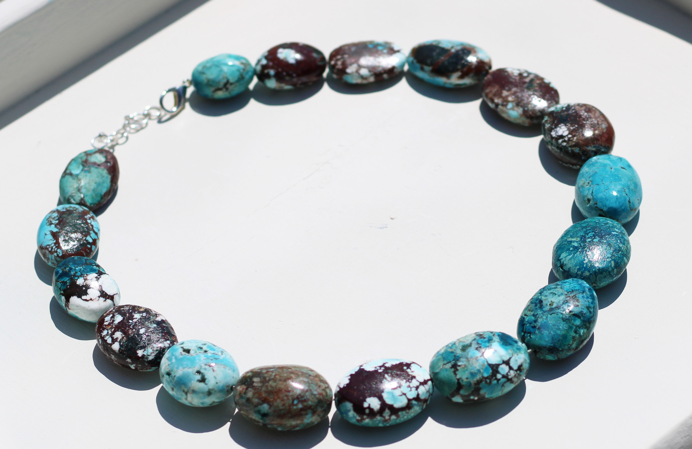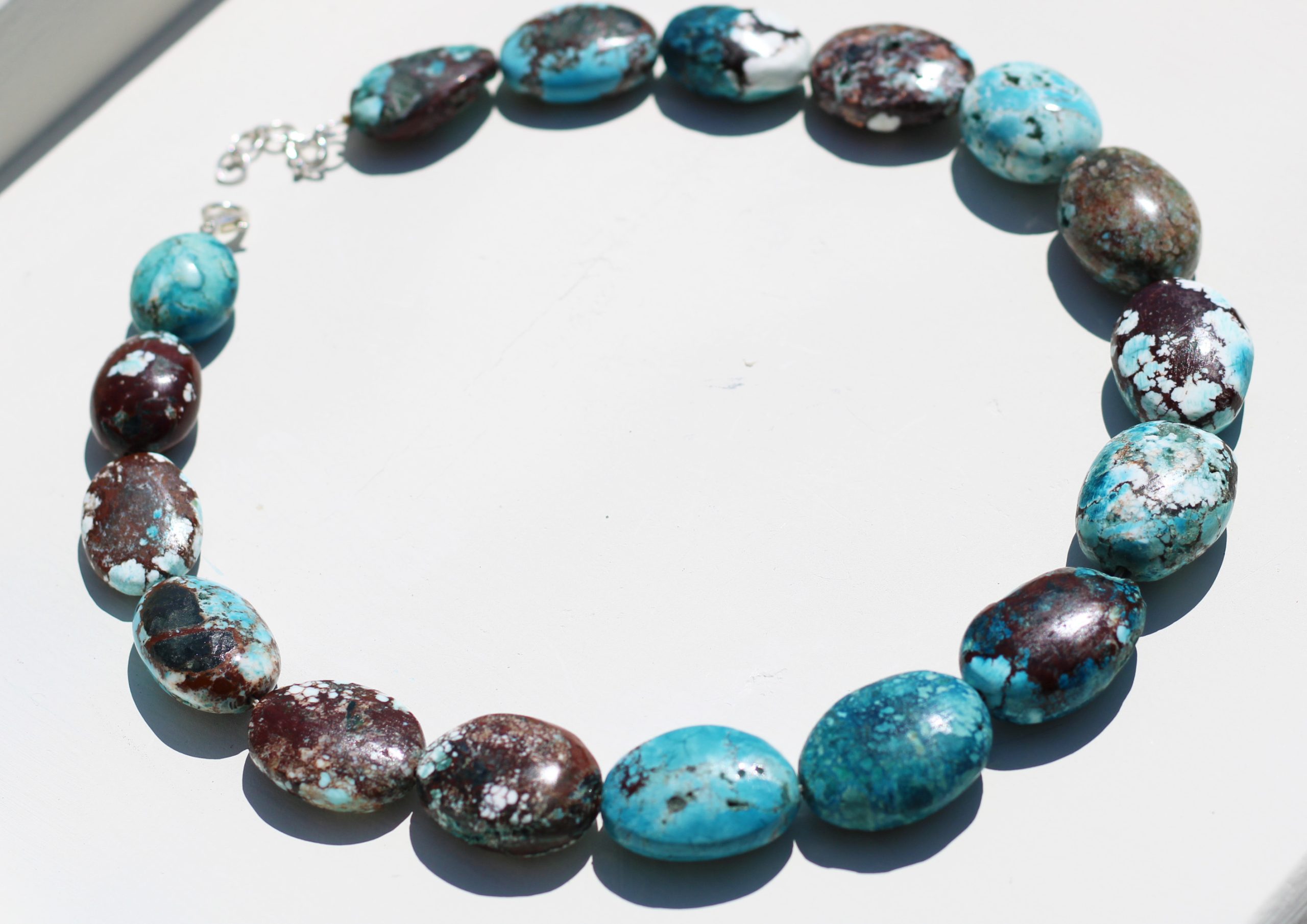These are vintage turquoise stones. Vintage chunky turquoise necklace is made of Tibetan Turquoise. Natural stone necklace is exceptionally shiny naturally.