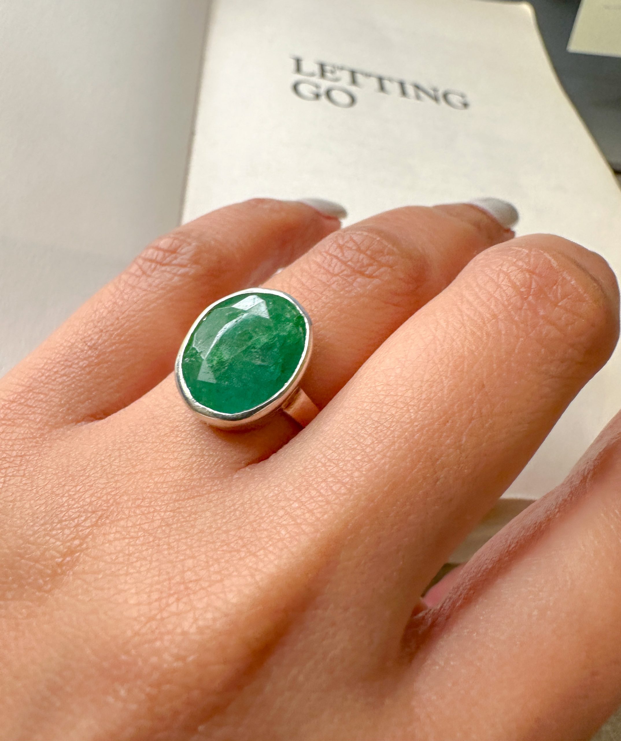 Whether you’re looking to add a touch of nature to your everyday look or seeking a meaningful piece of jewelry, Bhadra Natural Emerald Adjustable Silver Ring is the perfect choice.