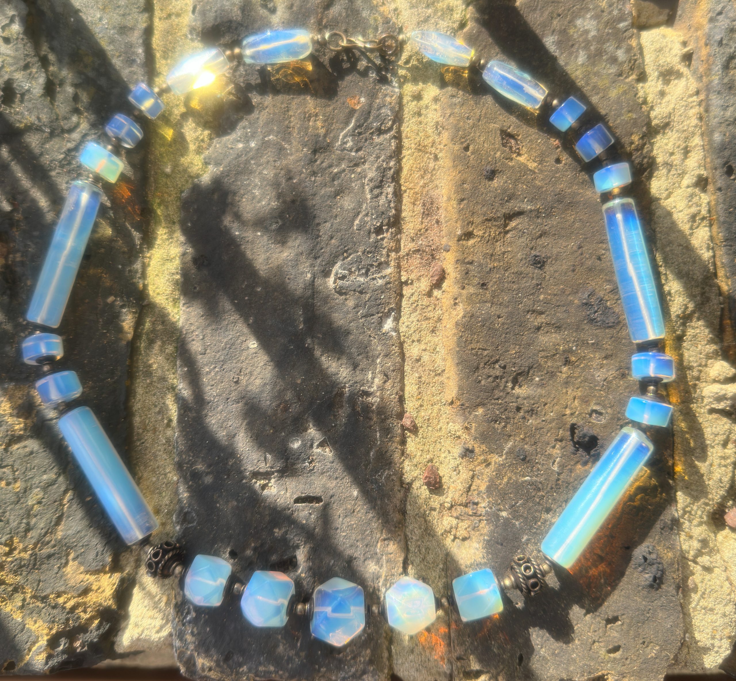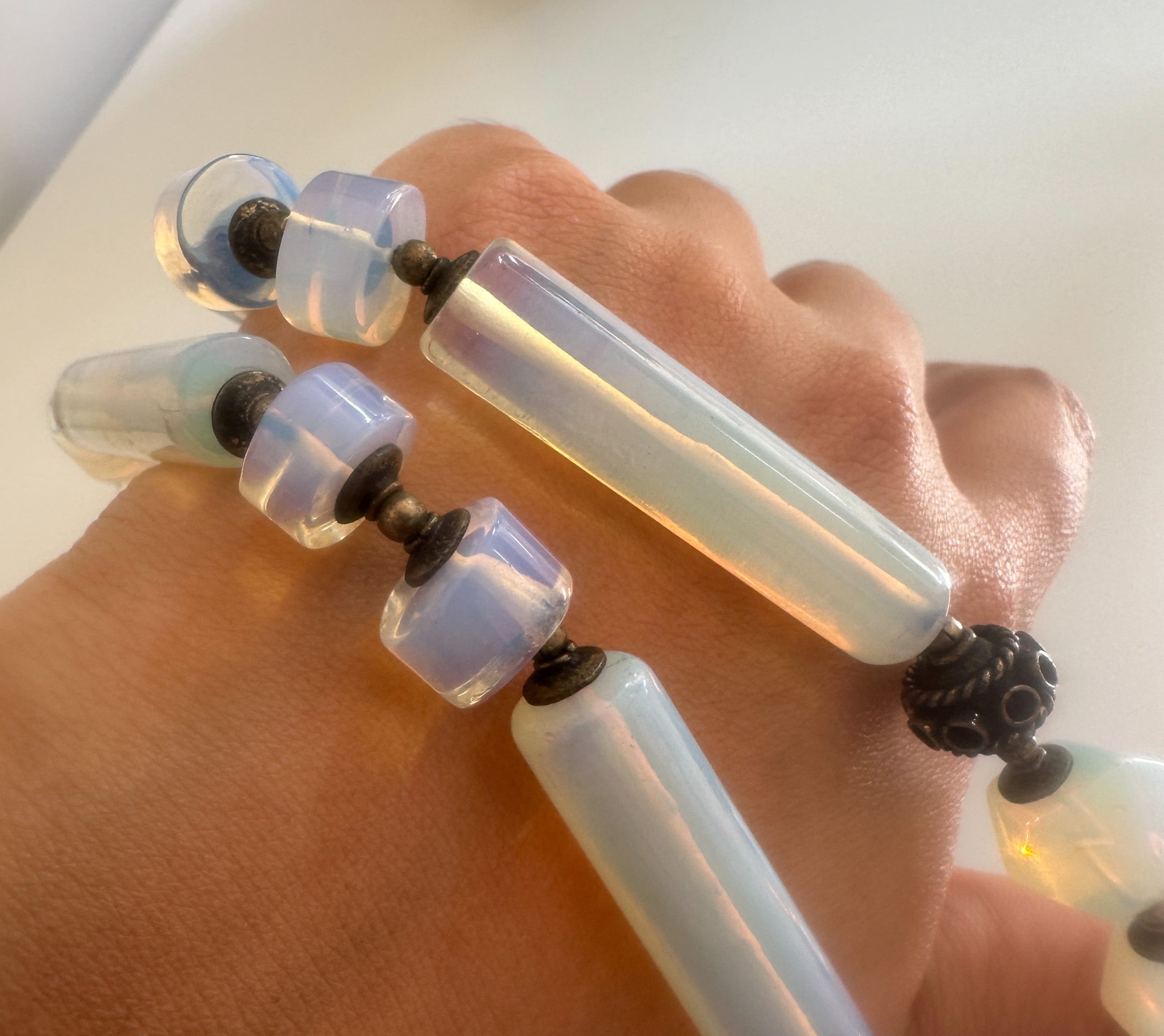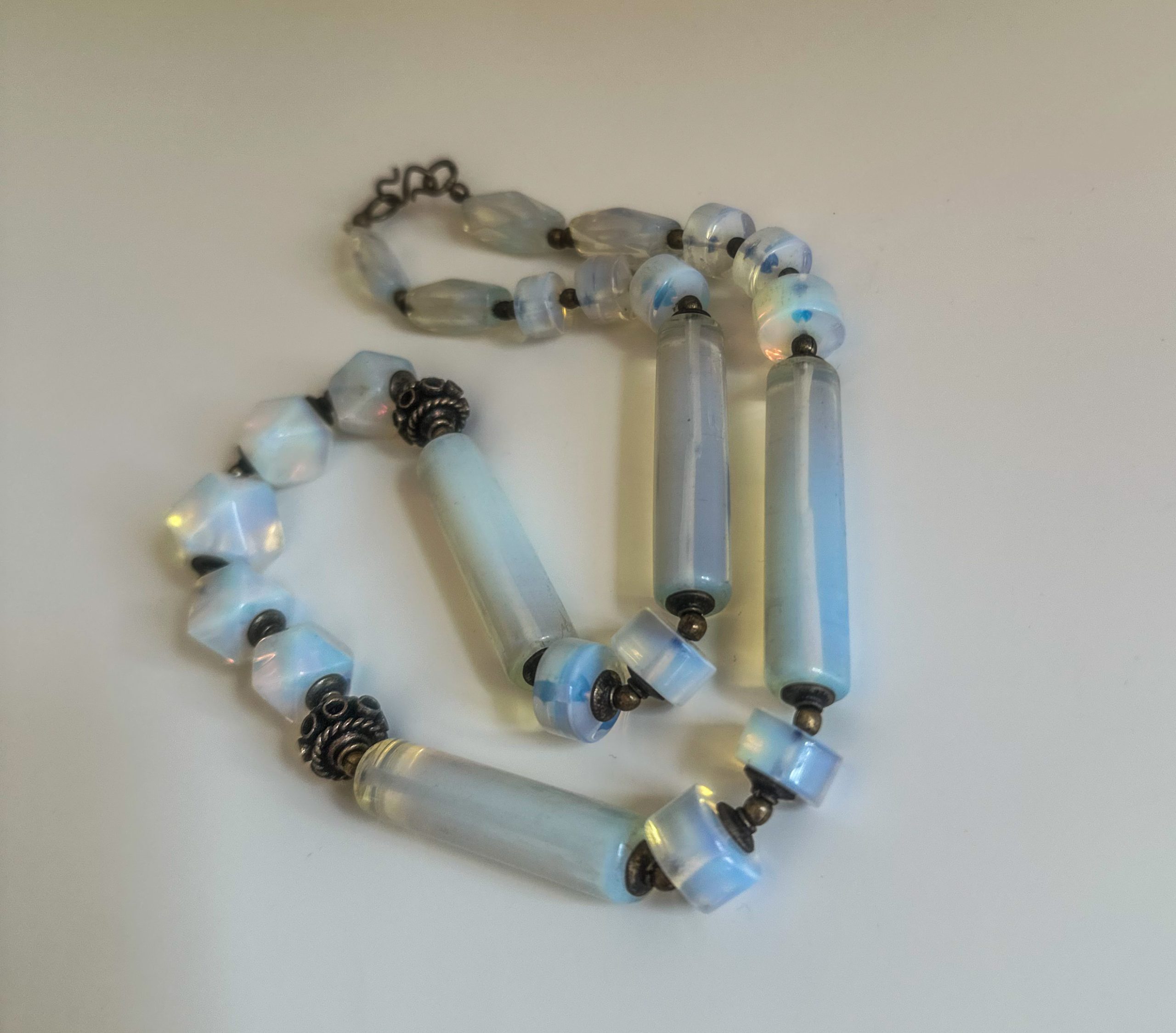 A vintage rainbow moonstone necklace with brass beads. One of a kind jewellery piece