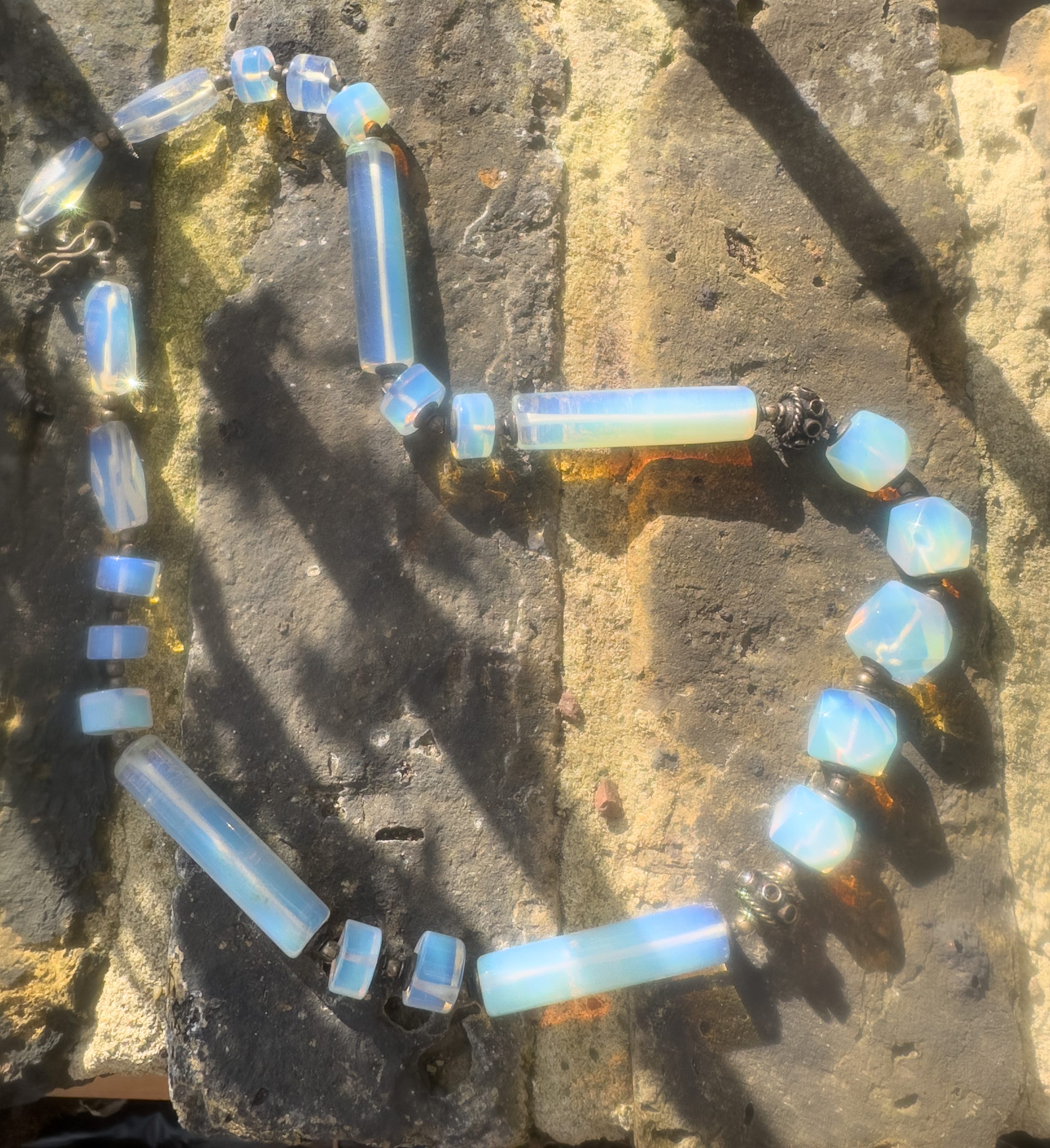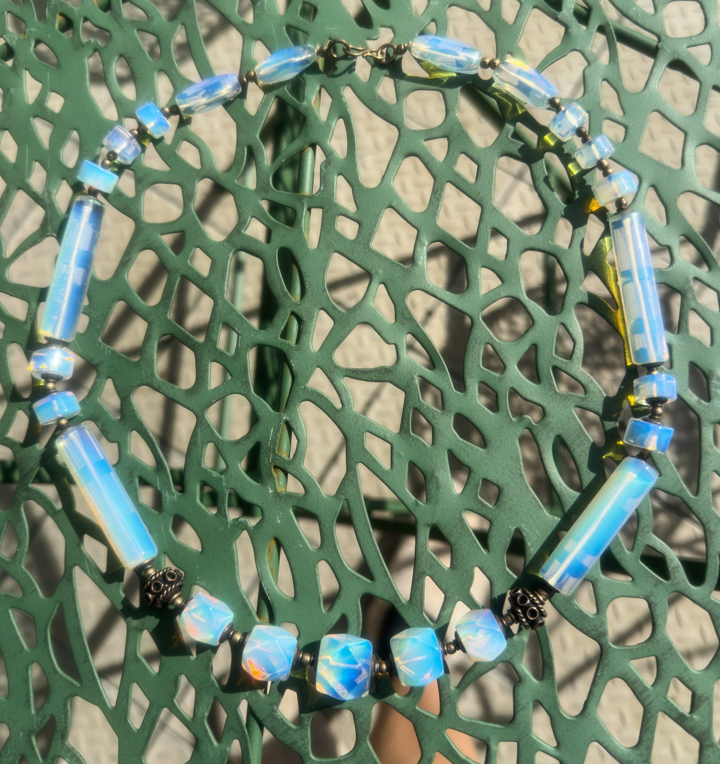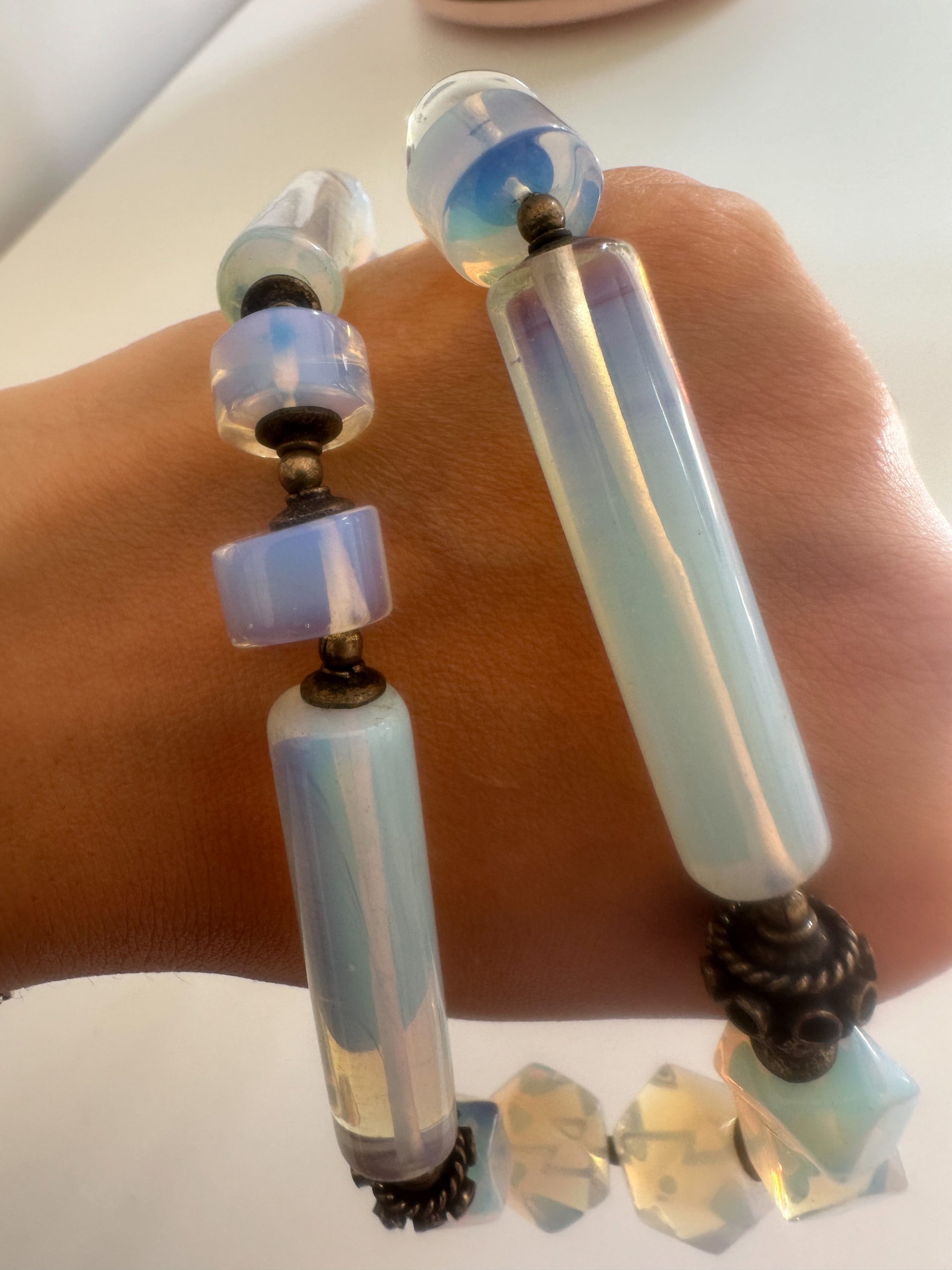 A vintage rainbow moonstone necklace with brass beads. One of a kind jewellery piece